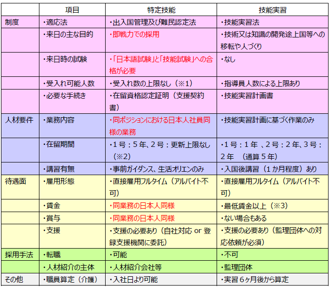 これまでの「技能実習」制度と「特定技能」はどんな違いがあるか?よく比較される二つの在留資格についてわかりやすくポイントを説明します。